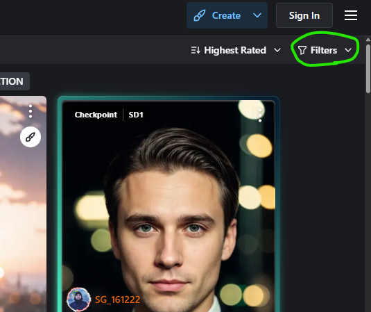 因為C站有很多各種模型的資訊, 所以最好到同一行的最右方點一下過濾器Filters