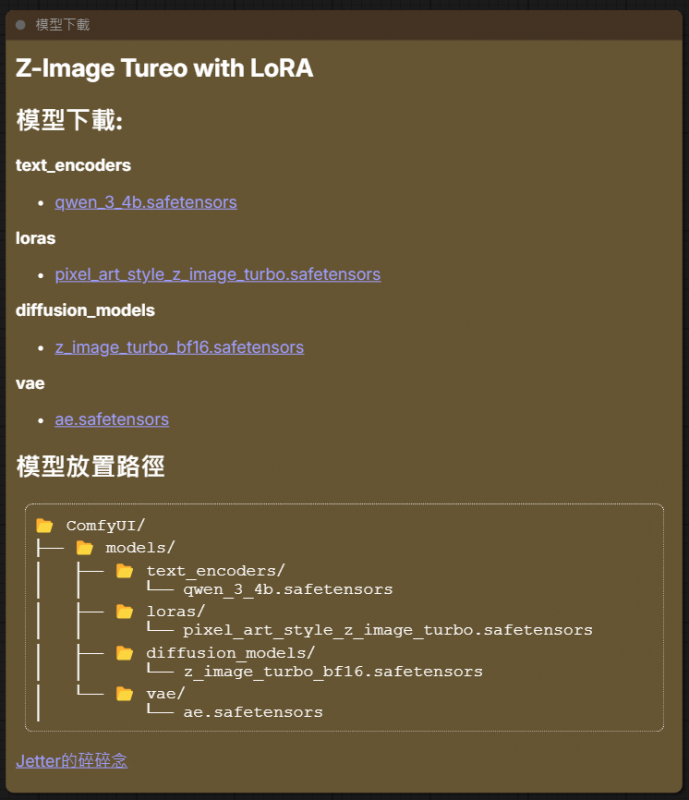 如果忘了在這個畫面下載.. 也沒關係.. 工作流中我有放一個下載網址和放置的資料夾..直接點就可以下載了..