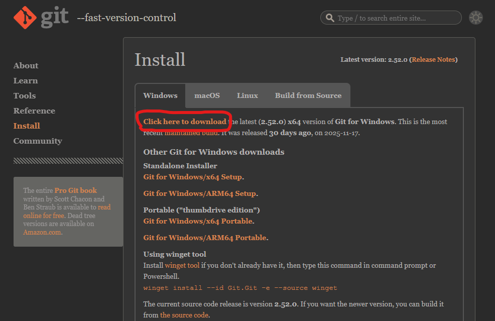 在安裝ComfyUI之前, 要先安裝git這個程式, 到 https://git-scm.com/ 網站, 下載Windows版本